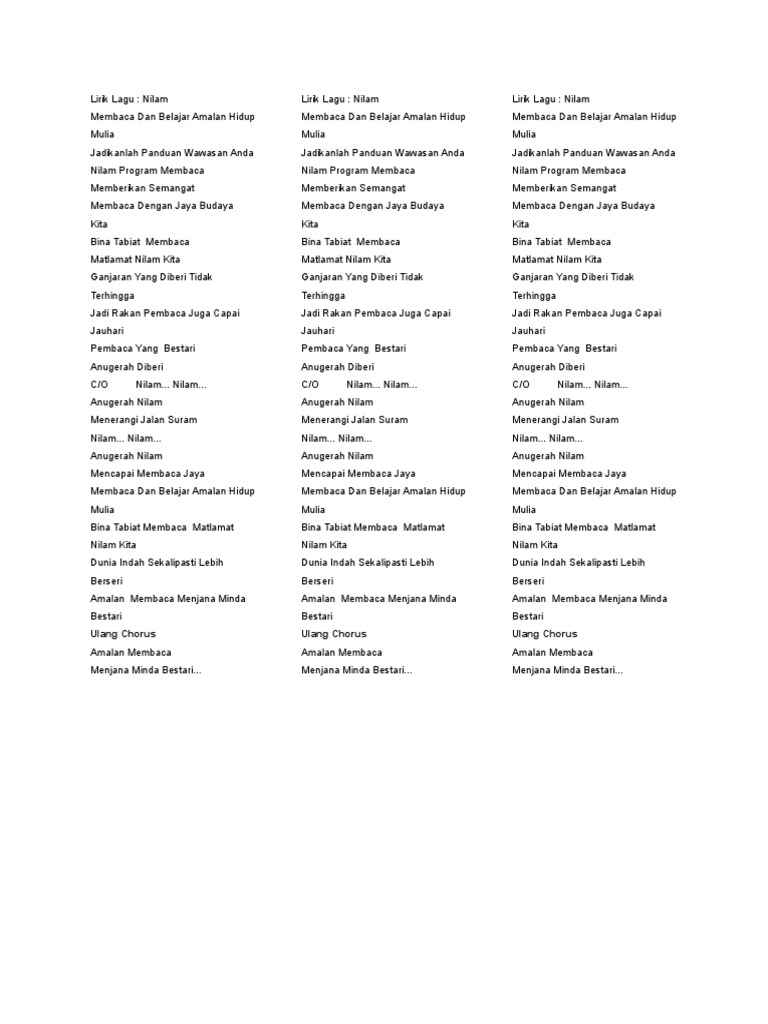 PPD PETALING PERDANA SEKOLAH JENIS KEBANGSAAN CINA HAN MING JALAN MASJID BATU 14 KG BAHARU PUCHONG 47100 PUCHONG SELANGOR Nombor Telefon. Lagu negaraku yang baru ini dinyanyikan setelah perdana menteri malaysia yang keempat mahathir mohamad melaungkan merdeka sebanyak tujuh kali. Lirik Lagu Keranamu Malaysia Buruh nelayan dan juga petani Gaya hidup kini dah berubah Anak-anak terasuh mindanya Lahir generasi bijak pandai Pakar IT pakar ekonomi Jaguh sukan dan juga jutawan Berkereta jenama negara Megah menyusur di jalan raya Alam cyber teknologi terkini Kejayaan semakin hampiri Biar di kota ataupun desa.